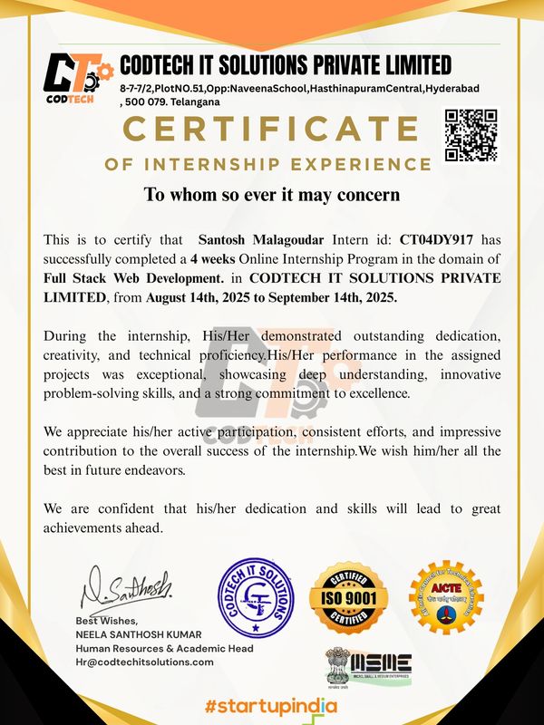 𝐖𝐞𝐥𝐜𝐨𝐦𝐞, 𝐢𝐧𝐭𝐞𝐫𝐧𝐬, 𝐭𝐨 𝐭𝐡𝐞 𝐦𝐨𝐬𝐭 𝐩𝐫𝐞𝐬𝐭𝐢𝐠𝐢𝐨𝐮𝐬 𝐢𝐧𝐭𝐞𝐫𝐧𝐬𝐡𝐢𝐩 𝐨𝐩𝐩𝐨𝐫𝐭𝐮𝐧𝐢𝐭𝐲 𝐰𝐢𝐭𝐡 𝐂𝐎𝐃𝐓𝐄𝐂𝐇, 𝐚 𝐜𝐞𝐫𝐭𝐢𝐟𝐢𝐞𝐝 𝐜𝐨𝐦𝐩𝐚𝐧𝐲 𝐫𝐞𝐜𝐨𝐠𝐧𝐢𝐳𝐞𝐝 𝐛𝐲 Startupindia,𝐌𝐒𝐌𝐄, 𝐀𝐈𝐂𝐓𝐄, 𝐈𝐒𝐎 𝐚𝐧𝐝 𝐭𝐫𝐚𝐝𝐞𝐦𝐚𝐫𝐤 𝐫𝐞𝐠𝐢𝐬𝐭𝐞𝐫𝐞𝐝 and AWS ,GOOGLE partner. 𝐖𝐞'𝐫𝐞 𝐞𝐱𝐜𝐢𝐭𝐞𝐝 𝐭𝐨 𝐡𝐚𝐯𝐞 𝐲𝐨𝐮 𝐨𝐧 𝐛𝐨𝐚𝐫𝐝 𝐚𝐧𝐝 𝐥𝐨𝐨𝐤 𝐟𝐨𝐫𝐰𝐚𝐫𝐝 𝐭𝐨 𝐚 𝐫𝐞𝐰𝐚𝐫𝐝𝐢𝐧𝐠 𝐚𝐧𝐝 𝐞𝐧𝐫𝐢𝐜𝐡𝐢𝐧𝐠 𝐞𝐱𝐩𝐞𝐫𝐢𝐞𝐧𝐜𝐞 𝐭𝐨𝐠𝐞𝐭𝐡𝐞𝐫.